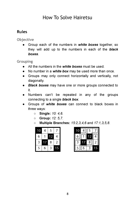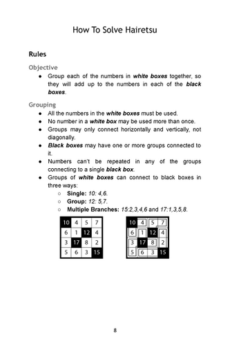- 100 puzzles: 7x7 Hairetsu.